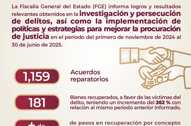 En la Fiscalía General del Estado seguimos trabajando con resultados claros a favor de las víctimas y de una justicia efectiva.