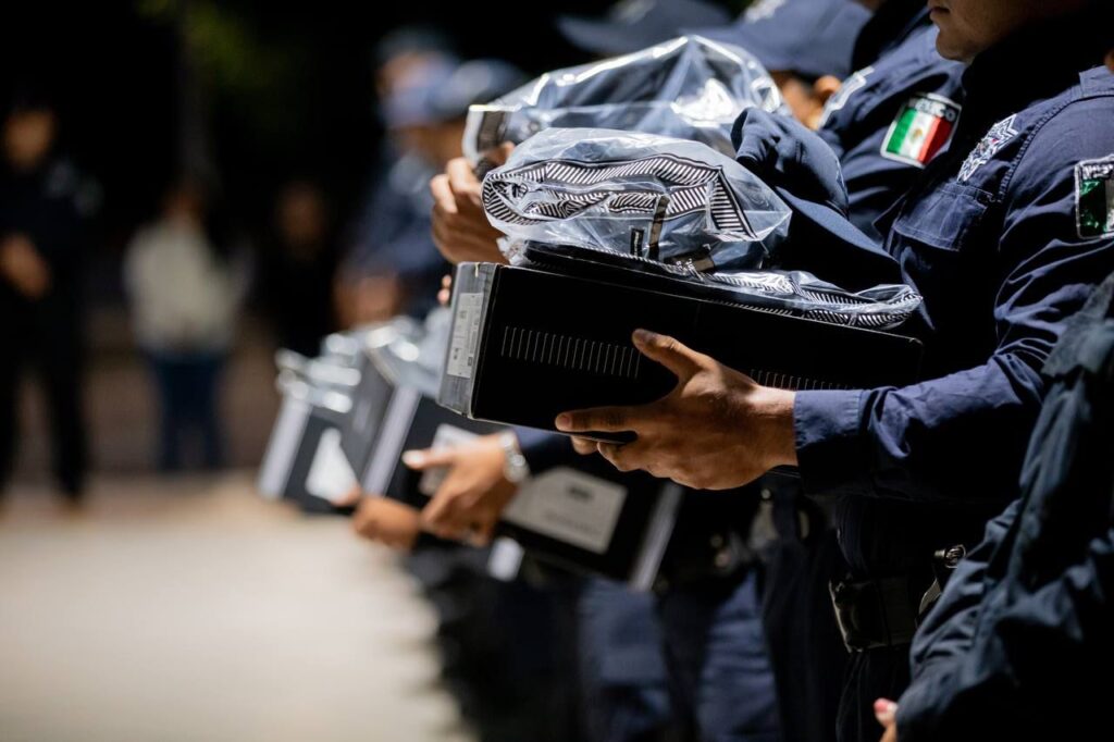 Este sábado, la gobernadora de Colima, Indira Vizcaíno Silva, entregó uniformes completos a las y los integrantes de la Dirección de Seguridad Pública y Vialidad de Manzanillo, con inversión cercana a 6.5 millones de pesos.