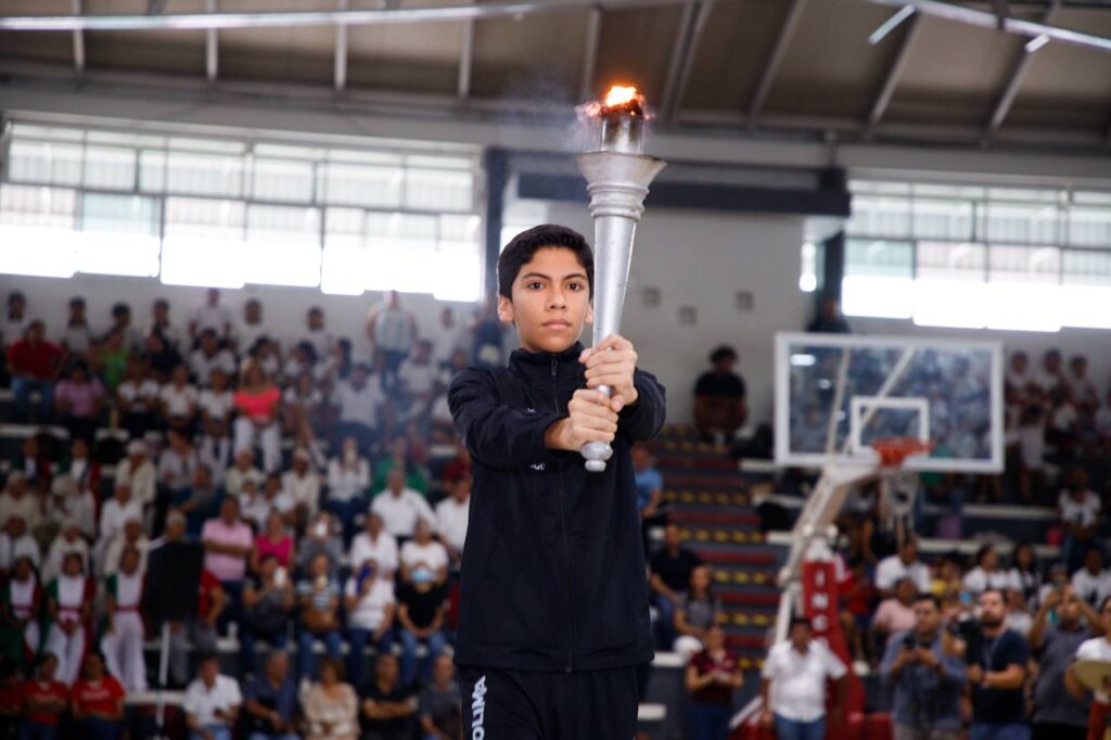 El juramento deportivo estuvo a cargo Ramsés Contreras Ballesteros, estudiante del Colegio Anáhuac del municipio de Colima; mientras que el joven ajedrecista Rodrigo Salvador Salinas Cárdenas, alumno del Colegio Begsu de Manzanillo, portó la llama olímpica y encendió el pebetero de esta Convivencia Deportiva.