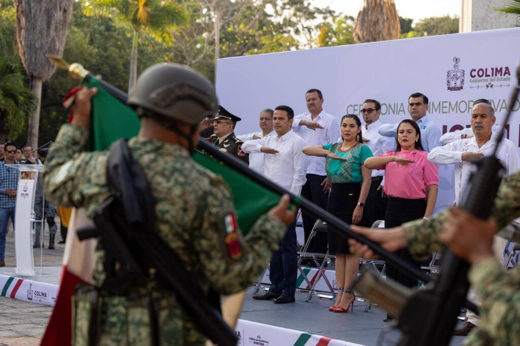 La gobernadora Indira Vizcaíno Silva encabezó la mañana de este jueves la ceremonia cívica para conmemorar el 115 aniversario del inicio de la Revolución Mexicana, en la explanada de Casa de la Cultura en la capital colimense, acompañada de titulares de los Poderes Legislativo y Judicial, así como otras autoridades de distintos niveles de gobierno.