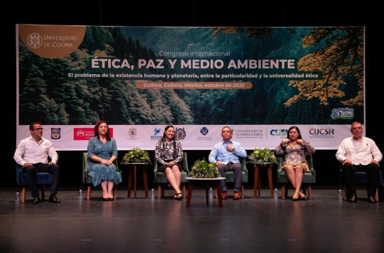 La mañana de este miércoles, la gobernadora Indira Vizcaíno Silva inauguró el Congreso Internacional ‘Ética, Paz y Medio Ambiente: El problema de la existencia humana y planetaria, entre la particularidad y la universalidad ética’, convocado por la Universidad de Colima, en el marco del 85 aniversario de la máxima casa de estudios.