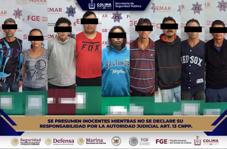 La Secretaría de Seguridad Pública (SSP) del Gobierno del Estado de Colima informa que, como resultado de los patrullajes preventivos que realiza en los municipios colimenses el personal operativo de la Policía Estatal Preventiva (PEP), en coordinación con elementos de la Secretaría de Marina del Gobierno de México, se detuvo a nueve personas por su presunta responsabilidad en delitos contra la salud, en hechos distintos ocurridos en Manzanillo, Tecomán y Villa de Álvarez.
