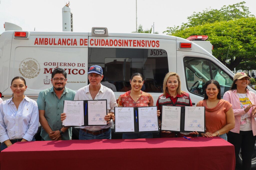 Indira Vizcaíno recordó que, además en Tecomán se atienden muchas emergencias de comunidades del estado de Michoacán que son cercanas al municipio de nuestro estado. La titular del Poder Ejecutivo estatal recordó que, al dar en comodato estas ambulancias al Ayuntamiento de Tecomán, significa que el gobierno municipal acepta darles el mantenimiento y atender todas sus necesidades.